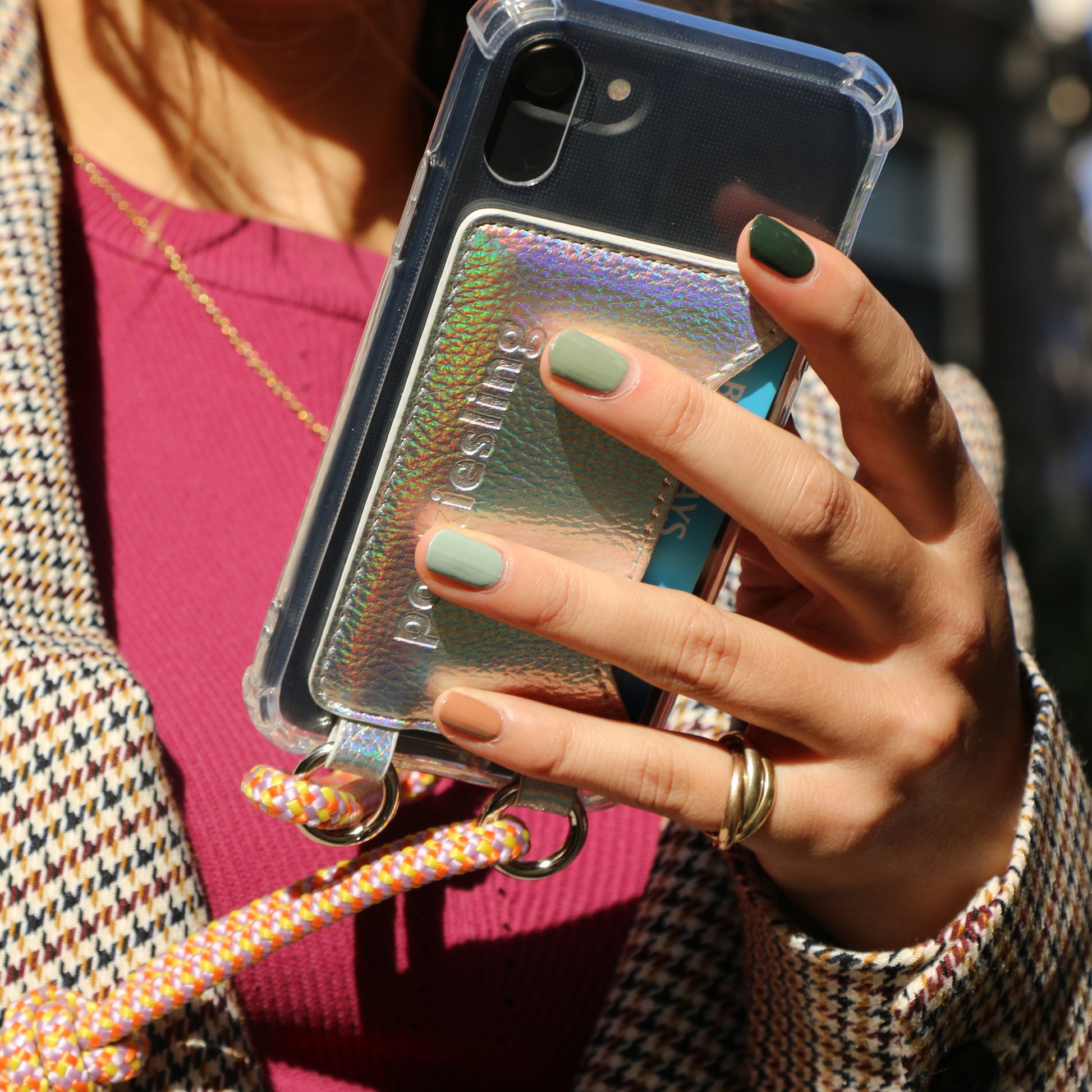 Pockiesling is het enige telefoonkoord die een beschermende telefoonhoes, afneembaar koord, kaarthouder en sleutelhanger in één product combineert! Vergeet nooit meer je telefoon, pinpas en sleutels. Ideaal voor of je nu onderweg bent, op de fiets, aan winkelen of feesten. Ook leuk als cadeau!